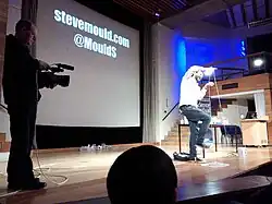 Between 2008 and 2010, Mould performed three sketch shows at the Edinburgh Festival Fringe with Gemma Arrowsmith.[11] Since 2011, Steve has performed live science comedy as part of the comedic trio Festival of the Spoken Nerd, with mathematician Matt Parker and physicist singer Helen Arney. Festival of the Spoken Nerd has performed at theatres as well as science and arts festivals.[12][13]