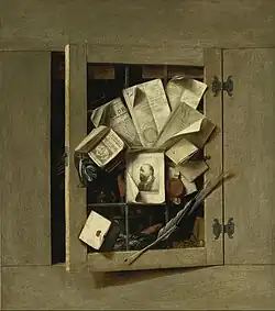 Still life with letter board Samuel van Hoogstraten 1667 Staatliche Kunsthalle Karlsruhe 54