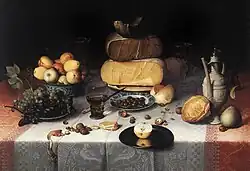 Still Life Paintings from the Netherlands 1550–1720, (Dutch:Het Nederlandse Stilleven 1550–1720) is a 1999 art exhibition catalog published for a jointly held exhibition by the Rijksmuseum Amsterdam (19 June – 9 September 1999) and Cleveland Museum of Art (31 October 1999 – 9 January 2000). The catalog included detailed discussions of 80 paintings from various collection holders, that together give an overview of the best genres in Dutch still-life paintings, namely kitchen piece (keukenstuk), fruit still-life, (fruitstuk), floral still-life (blommetje), breakfast piece (ontbijtje), vanitas, hunting piece (jaagstuk), and show piece (pronkstilleven). The catalog was organized by type, but also loosely by time period, starting with the earliest works.