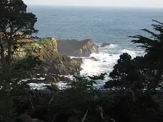 Stillwater Cove is shielded from northwesterly winds, facing southward along the California coast.