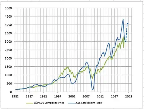 The asset pricing formula can be used on a market aggregate level as well. The resulting graph shows at what times the S&P 500 Composite was overpriced and at what times it was under-priced relative to the capital structure substitution theory equilibrium. In times when the market is under-priced, corporate buyback programs will allow companies to drive up earnings-per-share, and generate extra demand in the stock market.