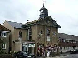 Only the chancel measuring about 8 metres by 5 metres, some of the windows[n 1][4] and the graveyard survive of the original parish church at the eastern end of the town, now known as Old St Peter's Church. A licence to give divine service from 1323 to 1333 was given to John Fromond, architecturally this places about a century after the likely building of the church's chancel.[4] A Victorian Gothic church, St Peter's, designed by J Colson, was built in 1866 at a central location in the High Street.[40] The Roman Catholic church of St Thomas More is a modern brick built hall off of the High Street near Stockbridge Town Hall.[41]