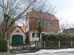 • Mansions by Bernhard Schießl in reduced historistic style, 1906-1910: Zumpestraße 2 (villa with turret and hipped roof projections), Tellhöhe 5 and 7 (turret houses), Zweigstr. 2 (attic house with oriel)