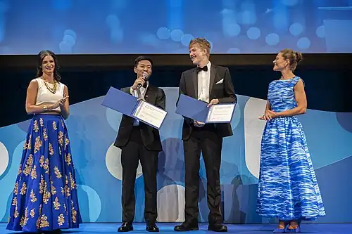 | 2024 | Christopher M. Whitfeld, Jonathan Zhao | Work in low-cost detection and filtration mechanisms for the carcinogenic PFAS chemicals.[1] | In this year, 30 countries were represented at the competition, with 40 participants.[5] | |
