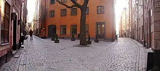 In 1723 a devastating fire destroyed large parts of the parish of the Catherine Church, an event which resulted in the city's first building code in 1725. Produced by City Architect G J Adelcrantz (1668–1739), the assistant of Nicodemus Tessin the Younger, it attempted to improve fire safety by prohibiting wooden buildings in the old town, and ameliorate the city's appearance by implementing the rectangular 17th century city plan.[2]