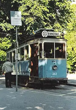 AB Stockholms Spårvägar (lit. 'Stockholm Tramways', SS) was a public transport company in Stockholm, Sweden. Founded in 1915, it was owned by the City of Stockholm to coordinate and operate public transport within the city.[1] In 1967 the public transport in the entire Stockholm County was coordinated and the company changed its name to Storstockholms Lokaltrafik (SL) and its ownership was transferred to the Stockholm County Council.[2]