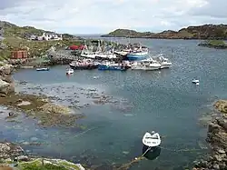 Stockinish Island has two kyles (narrows), namely Caolas Beag to the north east and Caolas Mòr to the south west. It provides shelter to Stockinish Loch, which has a pier used by yachts during the summer.