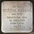 BEDŘIŠKA KANNOVÁ BORN 1870 DEPORTED 1942 TO TREBLINKA MURDERED IBIDEM |