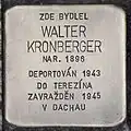 WALTER KRONBERGER BORN 1896 DEPORTED 1943 TO THERESIENSTADT MURDERED 1945 IN DACHAU |