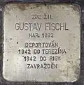 GUSTAV FISCHL BORN 1892 DEPORTED 1942 TO THERESIENSTADT 1942 TO RIGA MURDERED |