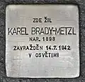 Brady-Metzl, KarelKarel Brady-Metzl was born in Třeboň on 28 May 1898, as the oldest son of Emilie and Ludwig Metzl. He had six siblings. His uncle and aunt Adolf and Karoline Brandt adopted two children Karel and Hedvika from Karolines' Sister Emilie, due to the incapability of having children themselves. In 1927 he married Markéta Dubská. The couple had a small retail business and a gas station in Nové Město na Moravě, where they were the only Jewish family. Karel and Markéta Brady-Metzl had two children - Jiří (born in 1928) and Hana (born on 31 May 1932). In 1939 Karel was denounced and arrested by the Gestapo. He was sent to prison in Jihlava for two months. In March 1941 Markéta was arrested and deported to Ravensbrück concentration camp. On 23 November 1941 Karel was arrested again. His children were brought to the Theresienstadt concentration camp in May 1942. Karel was transferred to Auschwitz concentration camp on 11 June 1942, where he was murdered on 14 July 1942.
