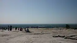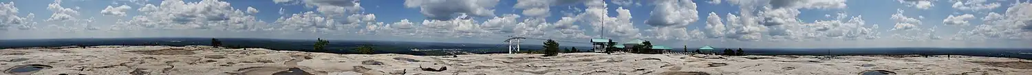 The top of the mountain is a landscape of bare rock and rock pools, and it provides views of the surrounding area including the skyline of downtown Atlanta, often Kennesaw Mountain, and on very clear days even the Appalachian Mountains. On some days, the top of the mountain is shrouded in a heavy fog, and visibility may be limited to only a few feet.