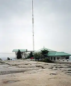 The short broadcast tower on the top of the mountain transmits two non-commercial stations: television station WGTV TV 8, and weather radio station KEC80 on 162.55 MHz. FM radio station WABE FM 90.1 was located on this tower from 1984 until 2005, when it was required to relocate to accommodate WGTV's digital conversion. W266BW FM 101.1 now has a permit as well. Atop the tower also sits the W4BOC amateur radio repeater, which operates on a frequency of 146.760 MHz. The tower is also used for the park's Project 25 two-way radio systems.[93][94]