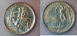 Venable deeded the north face of the mountain to the UDC in 1916, on the condition that it complete a sizable Civil War monument in 12 years. Finances as well as technical problems slowed progress. The U.S. Mint issued a 1925 Commemorative silver U.S. half dollar, bearing the words "Stone Mountain", as a fundraiser for the monument.[24] This issue, which required the approval of both the 1926 Congress and President Calvin Coolidge, was the largest issue of commemorative coins by the U.S. government up to that time.[20]: 81