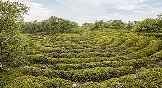 The stone labyrinths of Bolshoi Zayatsky Island are a group of 13 or 14 labyrinths on Bolshoy Zayatsky Island, one of the Solovetsky Islands in Arkhangelsk Oblast, Russia. Lacking standard archaeological study, a research group from Saint Petersburg theorize that the labyrinths are about 2500 years old, according to their orientation, their supposed ritual use, and changes in the direction of the zenith on the solstice throughout history.[1] Most researchers doubt that they are that old; the vast majority of labyrinths in this area date at the earliest to the Middle Ages.[2]