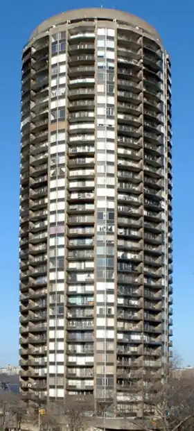 The Stonehenge is a residential apartment building on Boulevard East in the Woodcliff section of North Bergen, New Jersey in the United States.[3] Situated adjacent to North Hudson Park,[4] the building was constructed in 1967 during a high-rise building spree[5][6][7][8] and at 369 feet (112 m) is among the tallest buildings in the area and once one of the tallest in the state.[9] The 34-story building has 356 apartments and 5 levels of indoor parking.[4][10]