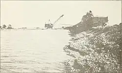 The earth-filled Black Butte Dam was constructed in 1963 by the U.S. Army Corps of Engineers and is the main flood control facility for lower Stony Creek. Black Butte is not part of the Orland project, but can be used to store extra irrigation water in wet years.[45] Its original capacity was 160,000 acre-feet (200,000,000 m3), but heavy sediment build-up had reduced this to 135,000 acre-feet (167,000,000 m3) by 1997, and the reservoir continues to lose about 700 acre-feet (860,000 m3) per year to sedimentation.[21] Downstream of Black Butte is the Orland project's Northside diversion dam, which diverts water into 17 miles (27 km) of main canals and 139 miles (224 km) of laterals, serving about 20,000 acres (8,100 ha) of fertile farmland.[46]