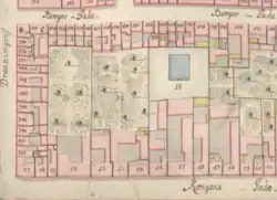 It is unclear when and for whom Rahbek's building was expanded. It is not unlikely that it took place in stages. It is however clear from census records from 1840 that the expansion into a substantial complex—consisting of two buildings fronting the street, two side wings, two rear wings, and an intermediate wing which divided the central space into two smaller courtyards—had by then been completed. The property was owned at the time by Peter Wilhelm Eckert, a cartwright and captain in the Fire Corps, from 1821 to 1839 with predicate of Court Wheelwright,[11] whose carriage workshop was also located at the site. Peter Wilhelm Eckert's father Hendrich Ekkert had held the predicate of Court Wheelwright from 1801 to 1819. The Eckert family's home and workshop had in 1801 been situated at No. 154 in Købmager Quarter (Gammel Mønt 22m demolished).[12] It is likely that either Eckert or his father at some point moved the family business to Store Kongensgade. At the time of the 1940 census, Eckert's property in Store Kongensgade was home to more than 80 people. Two of his tenants, a master joiner (snedkermester) and a master blacksmith, were most likely acting as subcontractors. Peter Vilhelm Eckert resided on the ground floor of the northern front wing (Rahbek's building) with his wife Marie Sophie Kyhl and two maids.[13] The 12 residents of the southern front wing were either employees from his carriage workshop or servants associated with his household.[14] Anna Beate Haxthausen, the 65-year-old widow of Frederik Julius von Haxthausen, a general major in the Royal Danish Army, resided on the first floor of the northern front wing with three unmarried children (aged 26 to 35), a male servant and two maids.[15] Edle Matilde Kofoed, the 64-year-old widow of a naval commander, resided on the second floor with her niece Inger Marie Krausen and two maids.[16] Marius Christian Ager, one of Princess Juliane's lackeys, resided on the third floor with four unmarried children (aged 17 to 25), one lodger and one maid.[17] Iver Valentin Ditlef Popp, who worked for the Bank of Denmark (as a stempelforvalter), resided on the first and second floor of the southern front wing with his wife Anne Marie Popp, their 21-year-old son, two maids and six more employees at the carriage workshop.[18] Christine Sophie Møller, a 67-year-old widow, resided on the first floor of the rear wing with her son Carl August Møller (an architect), two joiner's apprentices and one maid.[19] Sophie Friis, another widow, resided on the second floor of the rear wing with her four children (aged eight to 17), her 40-year-old sister, another 72-year-old widow and one maid.[20] Robert Allen, a "silver stainer", resided on the ground floor of the intermediate wing (mellembygningen) with his wife Karen Allen and their two sons (aged 19 and 29).[21] Johan Christian Liebert, a master joiner (snedkermester) resided on the first floor of the intermediate wing with his wife Else Malene Liebert, their seven children (aged three to 20), three lodgers and one maid. The eldest son was the then 20-year-old landscape painter Georg Emil Libert.[22] Peter Schauenborg, a courier, resided on the first floor of the northern side wing with his wife Juliane Marie Rasmussen and their three children (aged 18 to 24).[23] Niels Daniel Holm, a master blacksmith, resided on the ground floor of the side wing with his wife Sophie Frederike Ibsen, their three children (aged two to 15), a lodger, three smiths, a smith's apprentice and a maid.[24]
