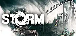 Storm Coaster is themed around the effects of a Category 5 Tropical Cyclone at a coastal shipping port.[36] Theming surrounding the ride depicts a path of destruction from the storm, with boats, cars, shipping containers and other debris strewn throughout.[37][38] However, the port is in the eye of the storm and everyone must evacuate via Coast Guard rescue boats.[36]