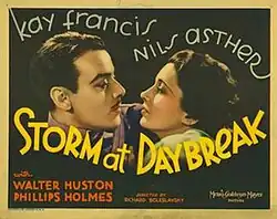 Storm at Daybreak is a 1933 American pre-Code drama film directed by Richard Boleslawski, written by Bertram Millhauser, and starring Kay Francis, Nils Asther, Walter Huston, Phillips Holmes, Eugene Pallette and C. Henry Gordon. It was released on July 14, 1933, by Metro-Goldwyn-Mayer.[1][2]