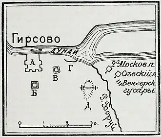 The Storming of Hirsovo (Hirsova) was a military operation carried out by Ottoman troops on 14 September (O.S. 3 September) 1773[1][2][4] during the Russo-Turkish War (1768–1774). The Ottoman Grand Vizier Muhsinzade Mehmed Pasha decided to storm the Hirsovo fortress occupied by Russian troops of Alexander Suvorov to facilitate the seizure of Giurgiu. Having pushed back the Russian outposts, the Turks came close to the Hirsovo fortifications; the Russians opened fire from the fortress and the Turks moved back; then they headed for the sconce. Repulsed by the sconce, they withdrew to their mountain artillery battery, but were knocked down from it by Colonel Prince Mochebelov and retreated, having lost additional men in the Russian pursuit.[5][1][2]