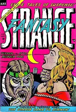Strange Fantasy is a 36-page, 10 cent, bi-monthly, anthology horror comics title published by Ajax-Farrell in the early 1950s. Its initial issue cover dates October 1952 and its last issue October/November 1954, for a total of 13 issues.[1]