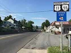 Strasburg is directly served by two primary highways, U.S. Route 11 and Virginia State Route 55. US 11 extends north and south, serving primarily as a local service road for nearby Interstate 81. SR 55 extends east and west, also serving primarily as a local service road for nearby Interstate 66 from Strasburg on east. West of Strasburg, SR 55 is concurrent with U.S. Route 48, which extends into eastern West Virginia. Both US 11 and SR 55 have interchanges with I-81 on the northeastern and northwestern edges of the town, respectively. I-81 extends northwards to the eastern panhandle of West Virginia, western Maryland, Pennsylvania, and New York state, and southwards to Tennessee. It also interchanges with the start of I-66 just northeast of Strasburg, which extends eastward to Washington, D.C.