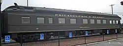 10 Reading Harlan and Hollingsworth 1913 Business ex-Reading Original name given to the car by Edward Stotesbury, president of the Reading Railroad. Originally named "Paradise" from 1964 to 2001. Restored to original "Reading" paint scheme.