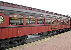 73 Pleasant View Pullman 1907 Open Air ex-Boston and Maine, built as Coach. Significance in the name unknown. Put into service at Strasburg in 1973.
