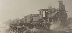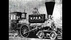 Although the pre-1852 history of the Strasburg Rail Road is sketchy, it is believed that the line was graded in 1835 and was operational by 1837.[5][7] The railroad operated as a horse-drawn railroad until it purchased a second-hand Norris-built, 4-2-0 steam locomotive named the William Penn in 1851.[7] Controlling interest in the railroad was purchased by John F. and Cyrus N. Herr in 1863. The rails were replaced around the same time with heavier ones to accommodate the locomotive.[8] In 1866, the Herrs were granted a charter to extend the Strasburg Rail Road to Quarryville; surveys were carried out, but the extension was eventually canceled because of an economic depression.[9]