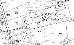Until the 1960s the area was used as a farm which is remembered in Old Farm Road and had a house known as Strawberry Vale House. The Strawberry Vale Brook ran through the area. By the 1970s the house had been demolished and Ordnance Survey maps show a riding school. At one time, Evan Evans, a horse breeder of international reputation, ran his business from there.[1] Stable Walk, Brook Walk and Nursery Road on the modern estate all refer to the area's history.