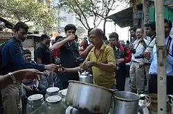 Street food of Kolkata is the food sold by hawkers and street vendors from portable market stalls in the streets of Kolkata, India. It is one of the major characteristics of the city, which makes Kolkata the "City of Joy". Kolkata's street foods include Indian street food as well as Chinese, Mughlai, British, and even European foods.[1]