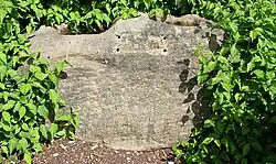 Several suggestions have been made for the history of the Great Stone. There was a succession of plagues in Manchester from the 14th century onwards,[75] and during the Great Plague of 1655–56 the holes in the top of the stone were filled with vinegar or holy water, through which coins were passed in the belief that would halt the spread of the disease.[76] But the holes are probably too deep for that to have been the stone's original purpose. It may have been a marker on the Roman road between Northwich and Manchester, or some kind of boundary marker.[77] The Great Stone is also thought to have been the base of an Anglo-Saxon cross shaft.[63] A local legend had it that the stone was slowly sinking into the earth, and that its ultimate disappearance would mark the end of the world.[78]