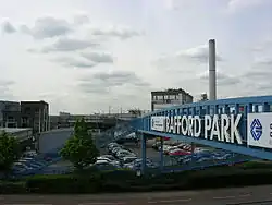 The arrival of the Manchester Ship Canal in 1894, and the subsequent development of the Trafford Park industrial estate in the north of the town – the first planned industrial estate in the world[20] – had a substantial effect on Stretford's growth. The population in 1891 was 21,751, but by 1901 it had increased by 40% to 30,436 as people were drawn to the town by the promise of work in the new industries at Trafford Park.[21][22]