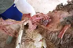 The condition occurs regularly in calves and lambs. The spine is flexed 180° so that the caudal region is near the neck, in so-called Schizosoma reflexum.[2]