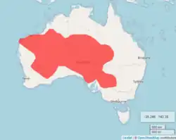 S. elderi is present in many Australian arid regions including states and territories of New South Wales, Northern Territory, Queensland, South Australia, and Western Australia.[2] S. elderi is found within spinifex-dominated landscapes, on red sandy plains, sandy dunes and occasionally on stony hills.[8] In addition, spinifex often occurs in association with hummock grasslands, mallee and acacia woodlands and shrublands.[9]