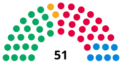 Since the last full review of boundaries in 2016 the council has comprised 51 councillors representing 27 wards, with each ward electing one, two or three councillors. Elections are held every four years.[31]