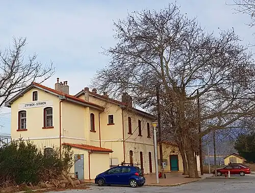 ![]() Strymonas railway station buildings and forecourt, March 2020 | ||||||||||||||||||||||