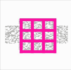 A set of stationary round windows are filled with dense drifting random dots, set in a surround of twinkling dynamic random dots. Result: All the windows appear to drift counter clockwise, in a direction of the dots that they contain.
