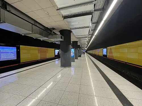 Schwabstraße station is a subterranean railway station in Stuttgart, Germany. It is located west of the city centre in the district of Stuttgart-West, along Rotebühlstraße at the intersection with Schwabstraße. The station originally formed the terminus of the first section of the Connection line (German: Verbindungsbahn), the original underground section of the Stuttgart S-Bahn. Several lines of the S-Bahn terminate at the station. It is notable for a 1.5 km long loop at the end of the station to allow S-Bahn trains to turn around.