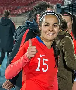 She represented Chile at the 2023 Pan American Games,[5] where Chile won the silver medal.[6] Despite suffering a strain in the semi-final match against the United States, she appeared as the substitute goalkeeper in the gold medal match as there were no other goalkeepers in the squad.[7]