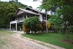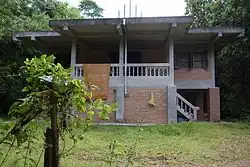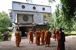 The central meditation hall (sala) is open to the sides and its floor is covered with sand. This corresponds to Buddhadasa's ideal of an environment that is as natural as possible.[9] The kutis (monks' cells) are scattered across the site along forest paths.[7] The laypeople's accommodations are just as spartan: they only have sleeping places made of cement with a mat and wooden “pillows”.[9] There are shared water points for washing clothes or body cleaning as well as hot springs for foot baths on the site.[10]