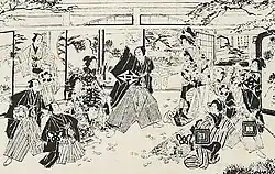 In Nagoya of the Meiji era at that time a number of theatres existed, such as the Chitose-za (千歳座) in Minamikuwana-machi (南桑名町), Shinmori-za (新守座) in Motoshige-chō (本重町), Onu-za (音羽座) in Minamifushimi-chō (南伏見町), Hoso-za (宝生座) in Ōsu, and Misono-za.[3] The theatre was founded under a different name originally[4] in January 1883.[2]