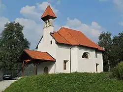 A chapel of ease dedicated to Saint Andrew was built in the village in 1758 based on the plans for the parish church in Mozelj. A previous church stood at the site as early as the 17th century, indicated also by a missal from 1641.[11] The now-abandoned church has a single nave and a bell-gable. Saint Andrew's Church is located on the edge of the village and is registered as cultural heritage.[12] The original structure was mentioned by Johann Weikhard von Valvasor in 1689, who stated that it had three altars. After the Second World War, when Suhi Potok was nearly abandoned, the church was used as a barn, after which it started to deteriorate. The originally wooden shingled roof was replaced with a tiled roof in the fall of 2006 to prevent further deterioration of the building.[13]