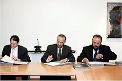 From right to left: Prof. Saleh Al Damegh, Dr. Khalid Al Rajhi and Prof. Martin Paul sign the contract agreement on December 18, 2008.
