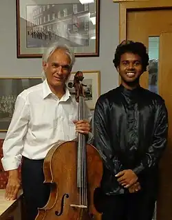 He is currently the Principal Second Violinist of the Chamber Music Society of Colombo[14][15][16][17][18] and was one of the former co-leaders of the Symphony Orchestra of Sri Lanka.[19][20]