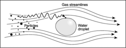 In a wet scrubbing system, dust particles will tend to follow the streamlines of the exhaust stream. However, when liquid droplets are introduced into the exhaust stream, particles cannot always follow these streamlines as they diverge around the droplet (Figure 1). The particle's mass causes it to break away from the streamlines and impact or hit the droplet.