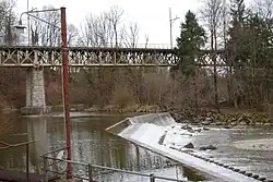 The problem lies with the bridges between Bischofszell Nord and Hauptwil, which have a maximum permissible load per metre of 6.4 t/m, because operations are now permitted without restraint with an axle weight of 22.5 t.[2] In the past this limit was much lower. Only rolling stock with a load of up to 3.6 t and 16 t axle weight were allowed to be used with permission, although axle weights of 20 tonnes for two-axle wagons were allowed if the speed on the bridges was reduced to 30 km/h (19 mph). If run in a certain order, wagons could be transported up to a load per metre of 5.0 t/m (2 wagons maximum of 3 t/m, 1 wagon up to 5 t/m, 2 wagons maximum of 3 t/m, or 2 wagons maximum of 3 t/m, 1–2 wagons up to 4 t/m 2, wagons maximum of 3 t/m).[3]