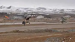 ![]() Mil Mi-17s of the Afghan Air Force in 2010, a year before the runway was asphalted | |||||||||||