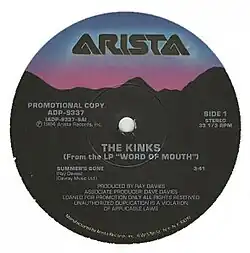"Summer's Gone" was first released on Word of Mouth (the band's final album on Arista Records) in 1984, where it was the tenth and penultimate track on the album. Word of Mouth was a moderate success, but not as popular as the band's earlier albums for Arista. After which, the track was issued the next year as a single in America, rather than the Dave Davies written "Living on a Thin Line", which had been released as a promo single for radio stations, and had reached #24 on the Mainstream Rock Chart.[1] However, unlike "Living on a Thin Line", the song did not chart on any charts. "Summer's Gone" also appeared on the 12 inch version of the "Do It Again" single, as well as the compilation album Picture Book.